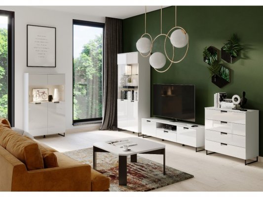 Obývačka Megan je moderná a dokonalá, vyrobená z kvalitných materiálov. Je v bielom prevedení a má bez-úchytové otváranie.